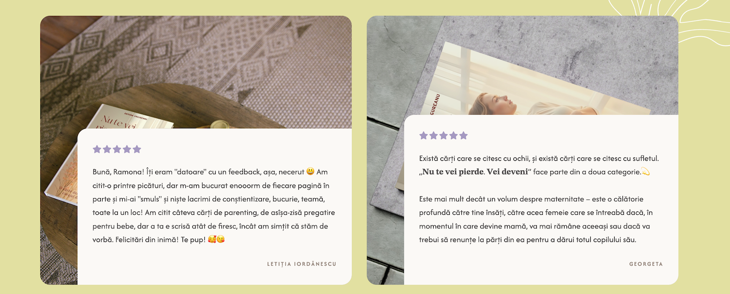 La final, rămâi cu un sentiment de liniște și curaj. Înțelegi că nu trebuie să alegi între a fi tu și a fi mamă. Poți fi amândouă. Și asta, dragă cititoare, este poate cel mai frumos dar pe care ți-l poate face o carte.